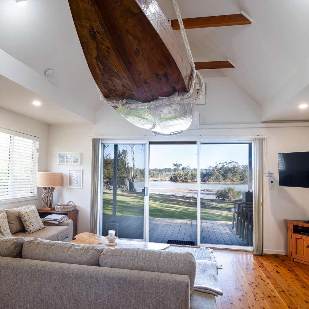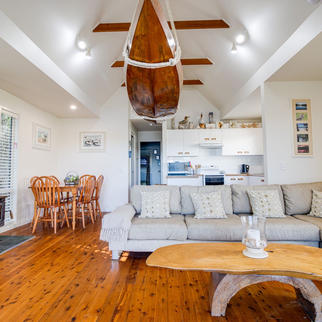 This two-bedroom chalet located in a special spot on the shores of beautiful Berrara Lagoon is just around the corner from the beach. The chalet is the perfect holiday location for a small family or one or two couples to relax and unwind. You may get occasional visitors though, as the bird and wild life in Berrara are not shy. The chalet has a slow combustion fireplace to warm you on those cold winter nights and reverse cycle air conditioning. This chalet also has its own private gas b.b.q.