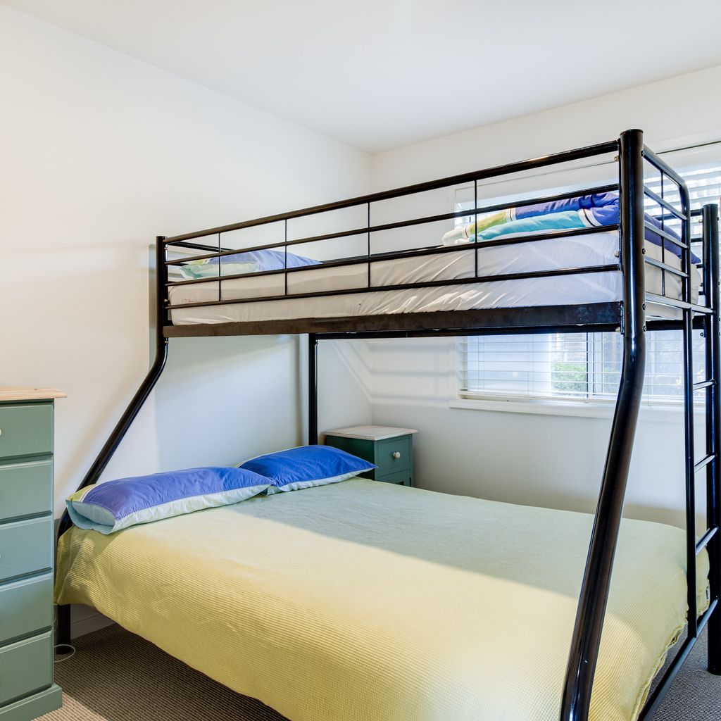 Sleeps 5: 1 Queen bed and 1 Double bunk set.