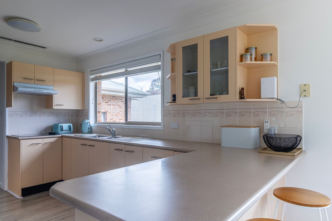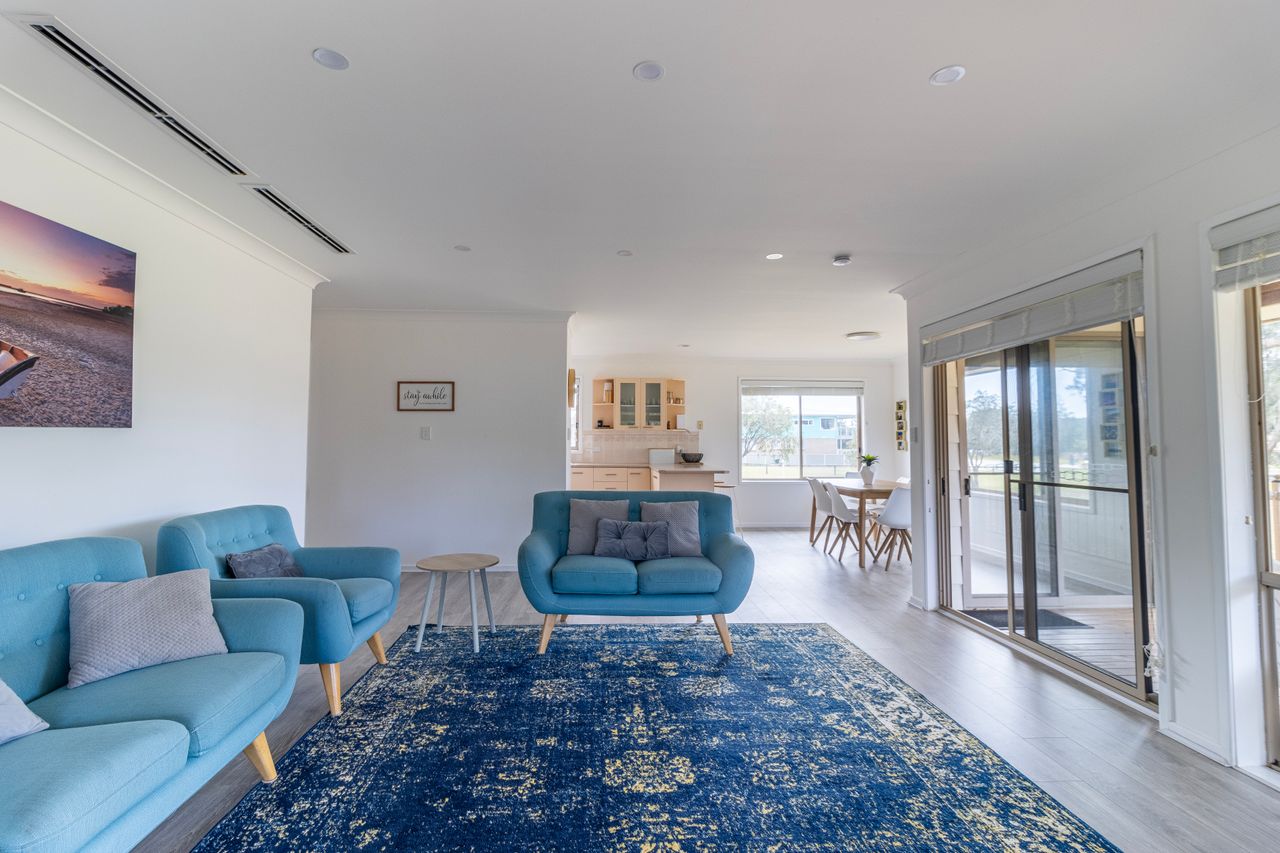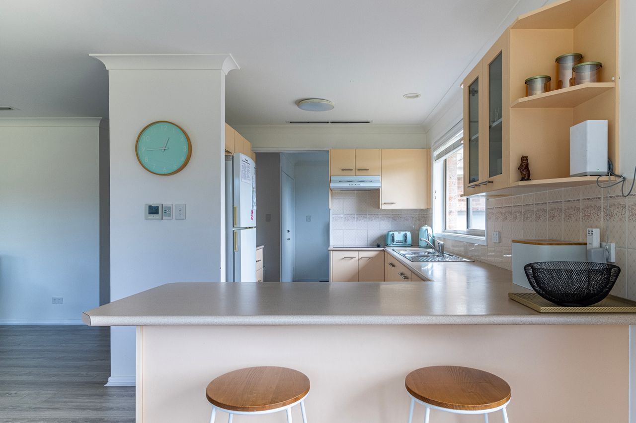 As you step inside Boomerang Retreat, you'll immediately feel a sense of warmth and tranquillity from its three bedrooms and one bathroom, ensuring a comfortable and relaxing stay for everyone. The living area invites you to unwind on the plush sofas.